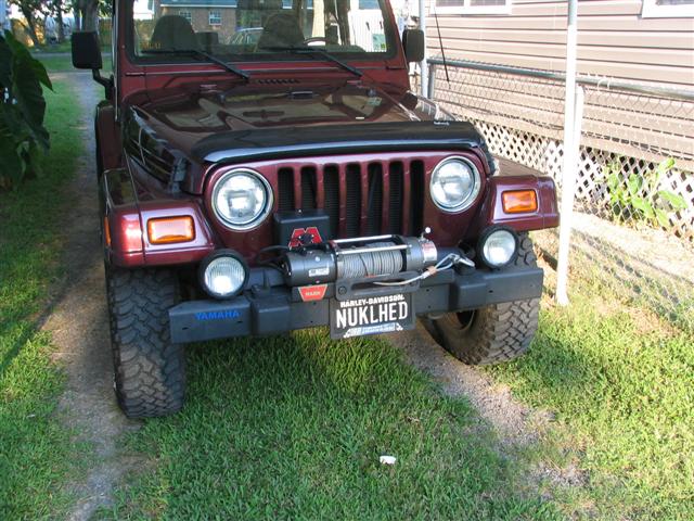 Oh yeah, I added a Warn M8000 back in August. Never used it, except to stretch the cable. Haven't needed it... but I'd rather have it and not need it then need it and not have it! Not a bad price either. I think it was 550 shipped and then I got the mounting plate from Harbor Freight (TJ Specific.. fits perfect!). I have more pics somewhere.. I'll have to find them.